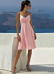Платье для подружки невесты может выделяться на фоне всех нарядов. Оно не должно сливаться с облачением невесты. Хорошо будет смотреться розовое, голубое или бледно-желтое платье. Удачной станет модель длиной чуть выше колен с пышной юбкой из шифона. Девичий наряд подчеркнет женственные изгибы, сделает образ нежным и утонченным. Украсьте талию широким контрастным поясом, если хотите разбавить бледные краски. Ему в тон подберите клатч и туфли.