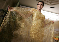 5. Думаете, какую купить ткань, тогда посмотрите на популярные и дорогие материалы, именно они помогут вам выглядеть блистательно. Изделие за 245 тысяч долларов является полупрозрачным, поскольку оно было создано из золотой проволоки. Это творение ювелирного мастерства весит чуть больше килограмма.