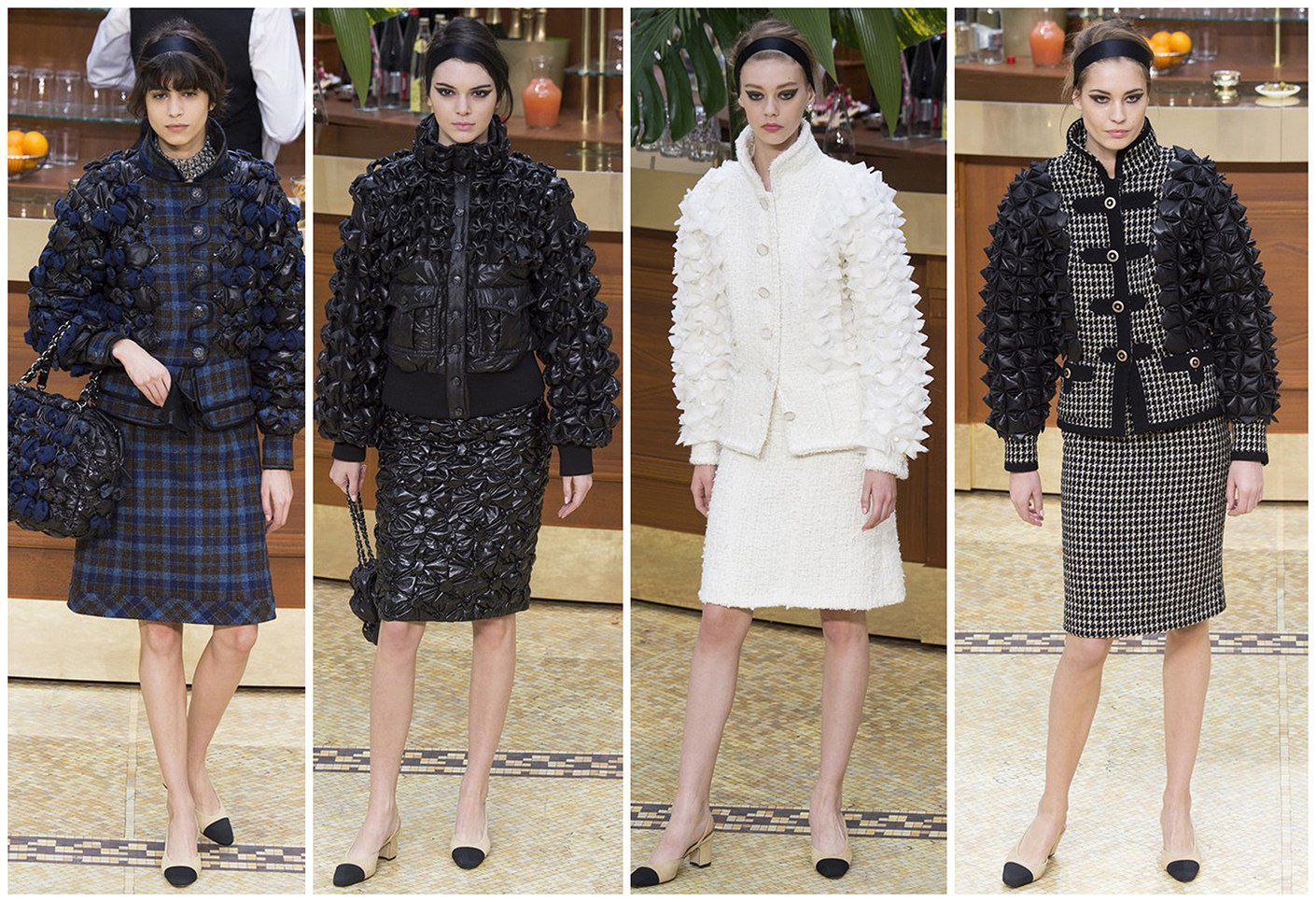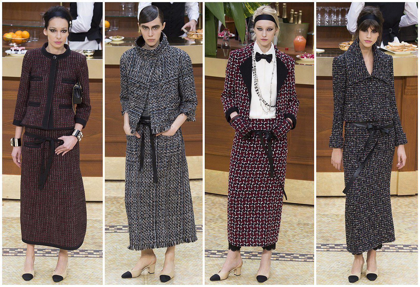 На прошедшей неделе моды в Париже дом Chanel представил коллекцию осень-зима 2015-2016. Модный дом не изменил своему стилю и в этот раз. Было представлено изобилие строгих костюмов из узнаваемых тканей «шанель».