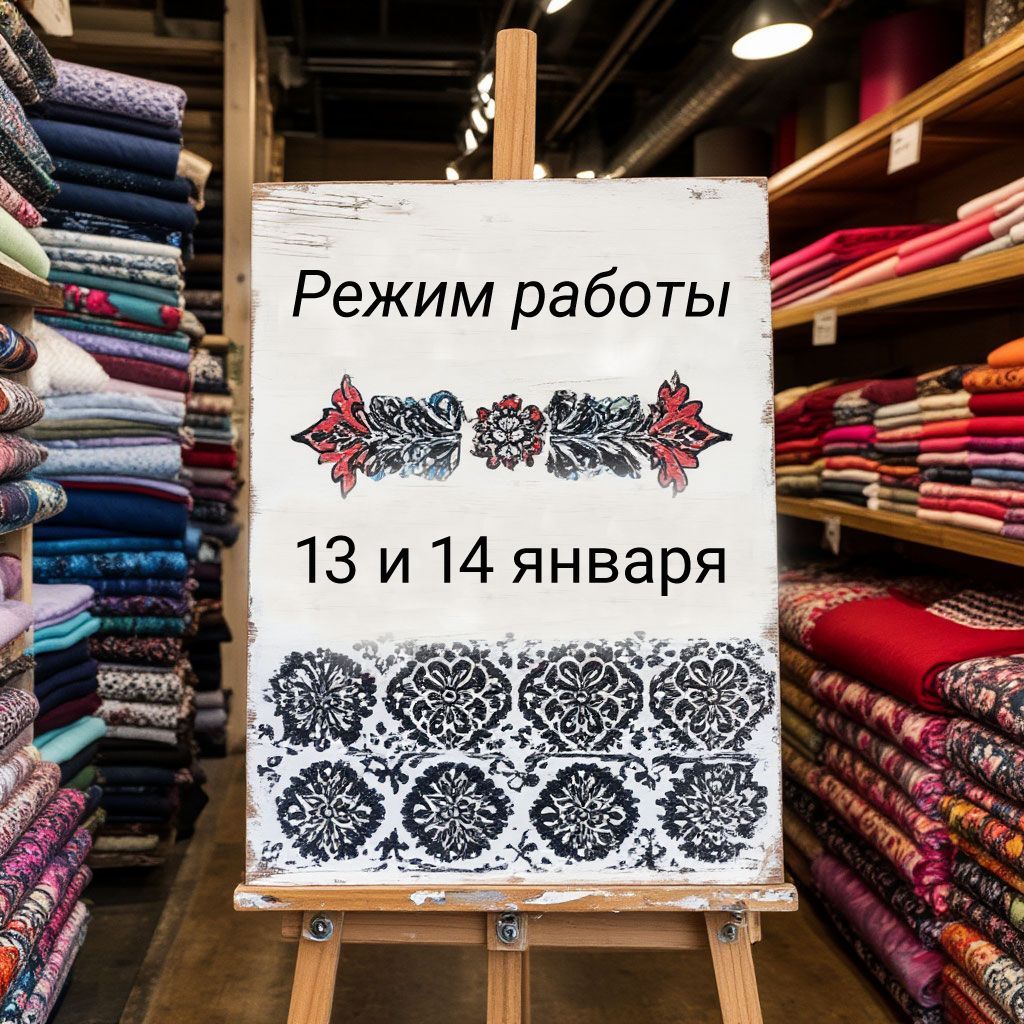 13 и 14 января 2024 г. Магазин тканей не работает.