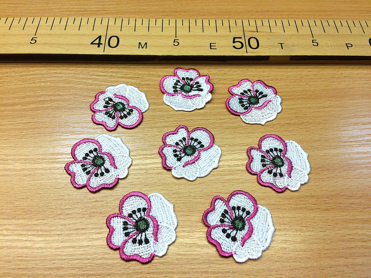 Аппликация бело-розовый цветок - цена 30 ₽ У нас самые доступные цены на Синтетические волокна в Москве, доставка по всей России - интернет магазин тканей Тессутидея. Артикул товара для заказа - F-3297. Страна производства ткани – Италия. Ширина этого материала - . Состав - . Наличие остатков на складе - 3
