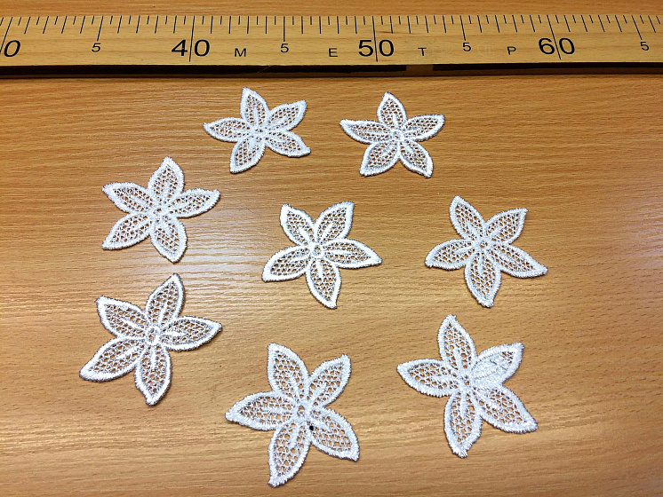 Аппликация белый цветок - цена 30 ₽ У нас самые доступные цены на в Москве, доставка по всей России - интернет магазин тканей Тессутидея. Артикул товара для заказа - F-3298. Страна производства ткани – Италия. Ширина этого материала - . Состав - . Наличие остатков на складе - 41
