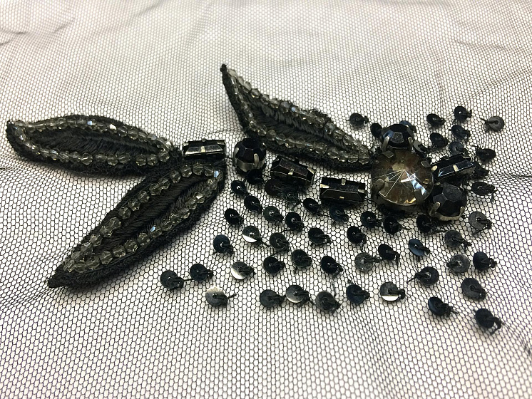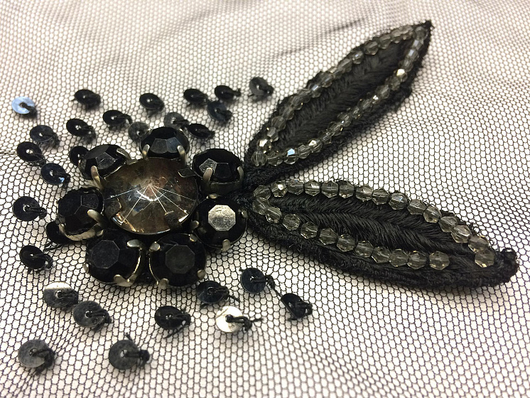 Аппликация на сетке листья из камней и пайеток - цена 1 500 ₽ У нас самые доступные цены на Синтетические волокна в Москве, доставка по всей России - интернет магазин тканей Тессутидея. Артикул товара для заказа - F-3588. Страна производства ткани – Италия. Ширина этого материала - . Состав - Полиамид, полиэстер. Наличие остатков на складе - 3 пара