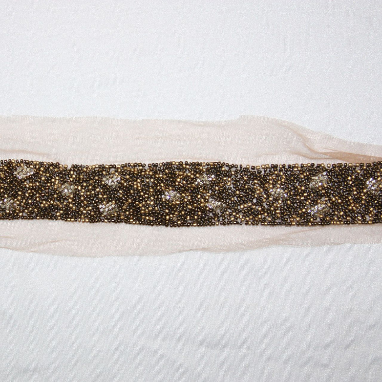 Аппликация тесьма (н) бисер и бусины на телесной сетке ш-3,5см Арт. F-2370