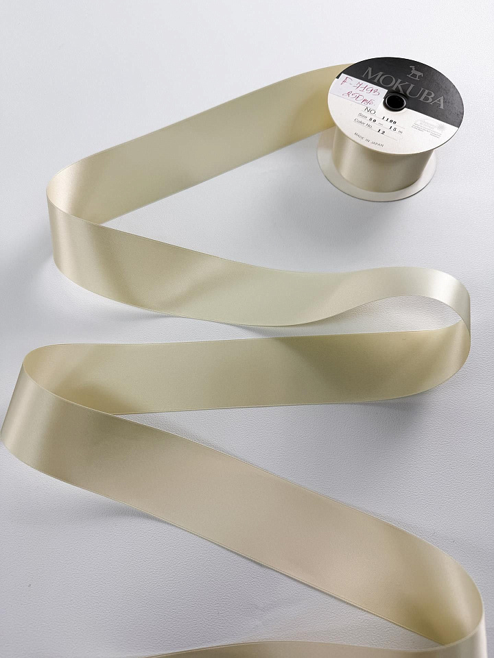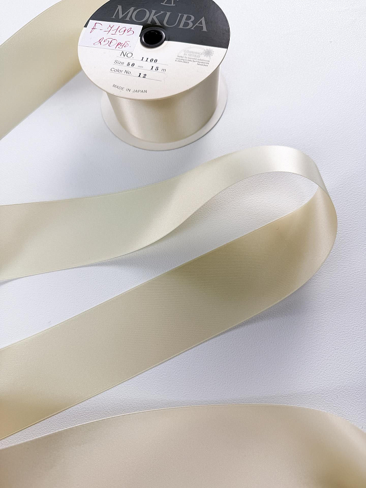 Атласная лента двухсторонняя ш-5см молочная Mokuba Арт. F-7193