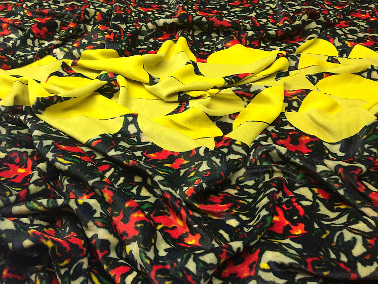 Бархат купон (1,7м) (н) растительный орнамент и желтые полукруги - цена 3 800 ₽ У нас самые доступные цены на в Москве, доставка по всей России - интернет магазин тканей Тессутидея. Артикул товара для заказа - 03-4835. Страна производства ткани – Италия. Ширина этого материала - 135. Состав - Шелк 25% вискоза 75%. Наличие остатков на складе - 7.6 м