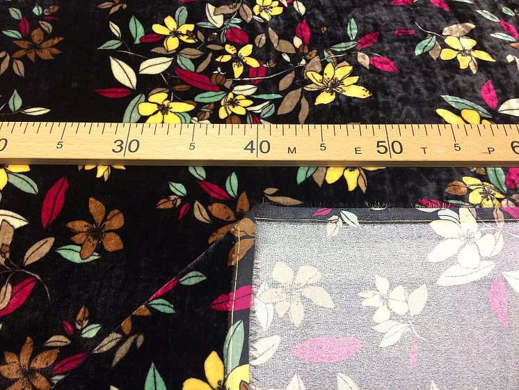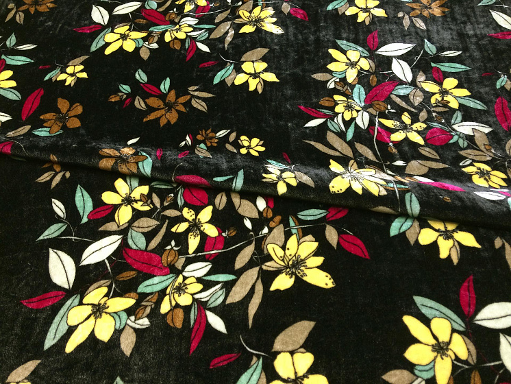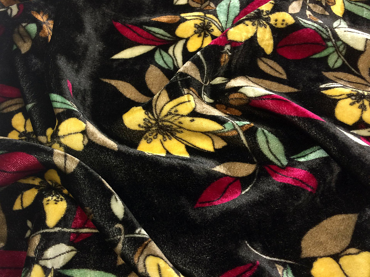 Бархат (н) цветочный орнамент на черном - цена 4 500 ₽ У нас самые доступные цены на в Москве, доставка по всей России - интернет магазин тканей Тессутидея. Артикул товара для заказа - 03-5143. Страна производства ткани – Италия. Ширина этого материала - 140. Состав - Вискоза 60% шелк 40%. Наличие остатков на складе - 2.5 м