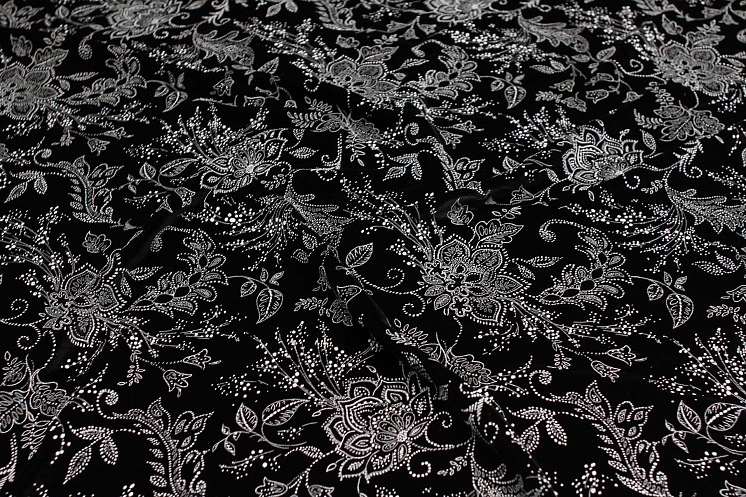 Бархат с напылением (н) белый цветочный рисунок на черном Арт. 10-3540