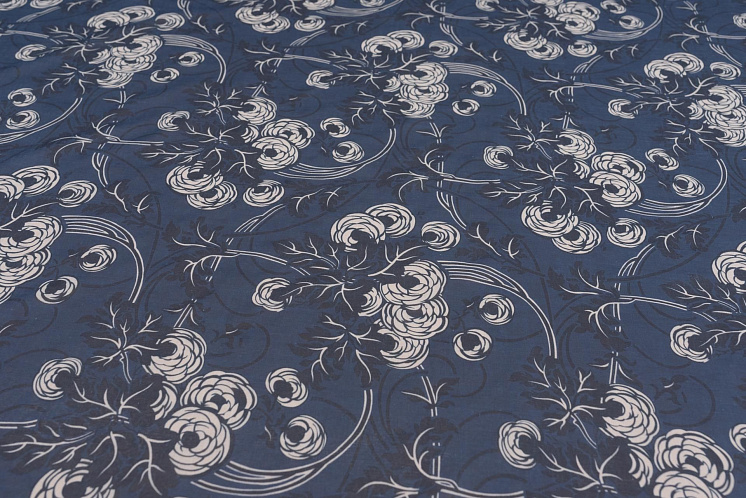 Батист (н) бежево-черный цветочный рисунок на темно-синем Арт. 01-7053
