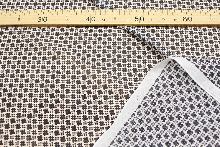 Батист (н) черный геометрический рисунок на молочном - цена 1 500 ₽ У нас самые доступные цены на в Москве, доставка по всей России - интернет магазин тканей Тессутидея. Артикул товара для заказа - 01-7400. Страна производства ткани – Италия. Ширина этого материала - 145. Состав - Хлопок 100%. Наличие остатков на складе - 18.6 м