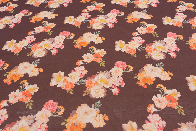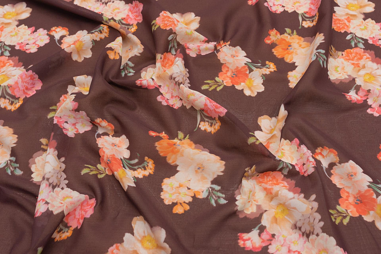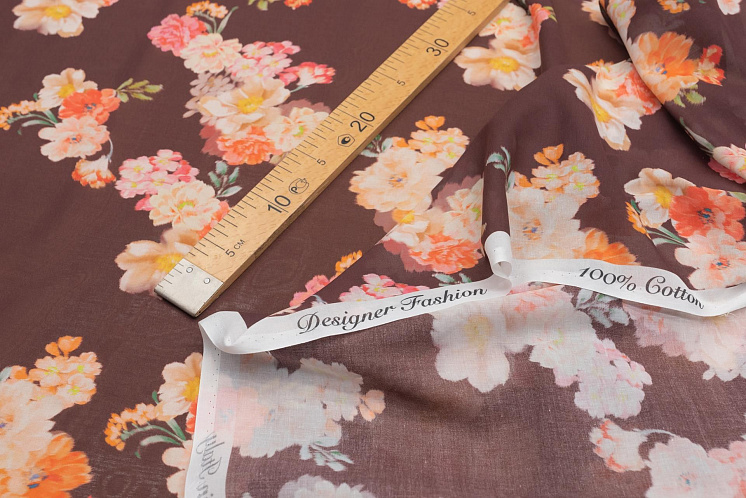 Батист (н) цветочный рисунок на темно-коричневом Арт. 01-6938