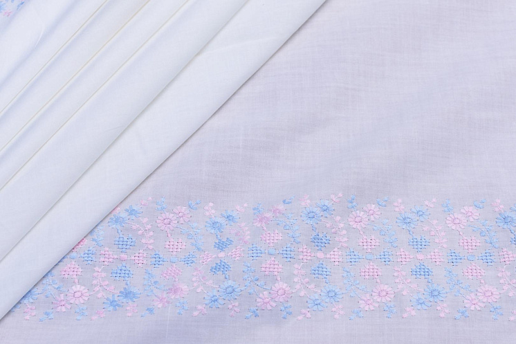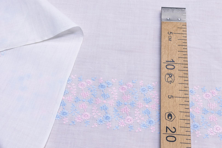 Батист с вышивкой (н) розово-голубая вышивка на айвори Арт. 01-5232