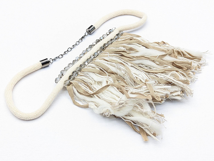 Декоративный элемент с камнями и бахромой бежевый - цена 800 ₽ У нас самые доступные цены на Синтетические волокна в Москве, доставка по всей России - интернет магазин тканей Тессутидея. Артикул товара для заказа - F-6157. Страна производства ткани – Италия. Ширина этого материала - . Состав - . Наличие остатков на складе - 14