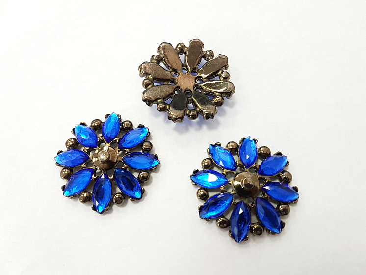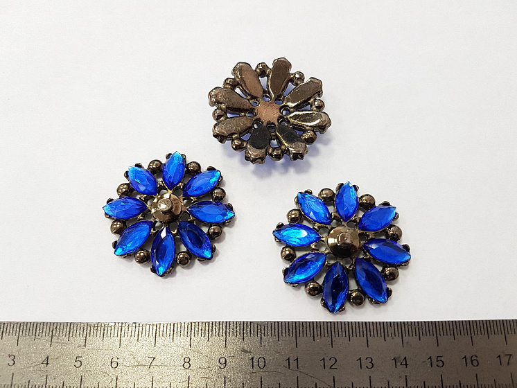 Декоративный пришивной цветок металл со стразами синий d-40мм - цена 700 ₽ У нас самые доступные цены на в Москве, доставка по всей России - интернет магазин тканей Тессутидея. Артикул товара для заказа - F-3598. Страна производства ткани – Италия. Ширина этого материала - . Состав - . Наличие остатков на складе - 11