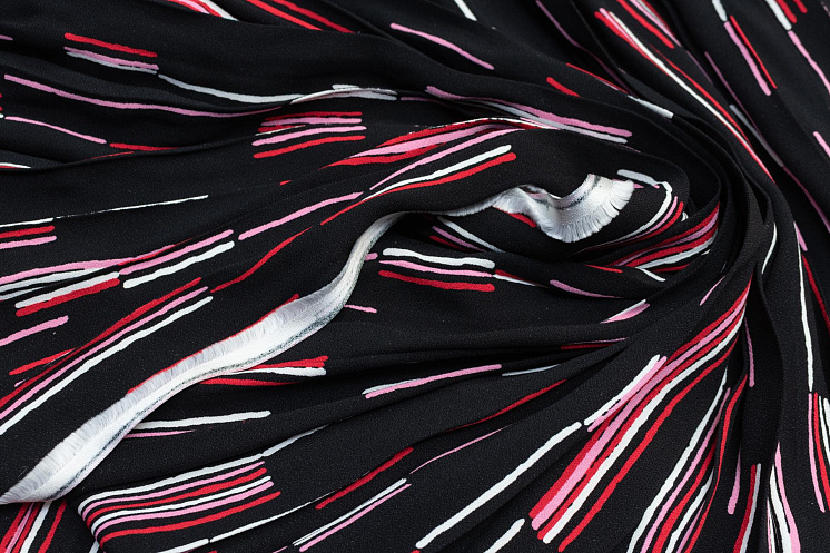 Деталь плиссе 40*140см (н) красно-бело-розовые стилизованные полосы на черном - цена 2 100 ₽ У нас самые доступные цены на Плиссе, гофре в Москве, доставка по всей России - интернет магазин тканей Тессутидея. Артикул товара для заказа - 04-1218. Страна производства ткани – Италия. Ширина этого материала - 140. Состав - Вискоза 100%. Наличие остатков на складе - 11