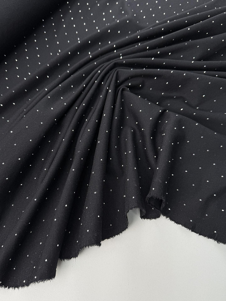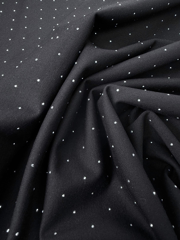 Джерси со стразами (о) черное - цена 2 600 ₽ У нас самые доступные цены на Джерси в Москве, доставка по всей России - интернет магазин тканей Тессутидея. Артикул товара для заказа - 13-1663. Страна производства ткани – Италия. Ширина этого материала - 150. Состав - Хлопок 65% нейлон 30% эластан 5%. Наличие остатков на складе - 1.9 м