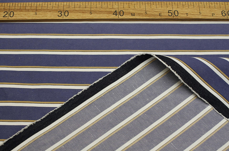 Джинса (н) сине-бело-бежевая полоска - цена 2 800 ₽ У нас самые доступные цены на Джинсовые ткани в Москве, доставка по всей России - интернет магазин тканей Тессутидея. Артикул товара для заказа - 01-7702. Страна производства ткани – Италия. Ширина этого материала - 155. Состав - Хлопок 100%. Наличие остатков на складе - 21 м