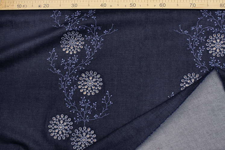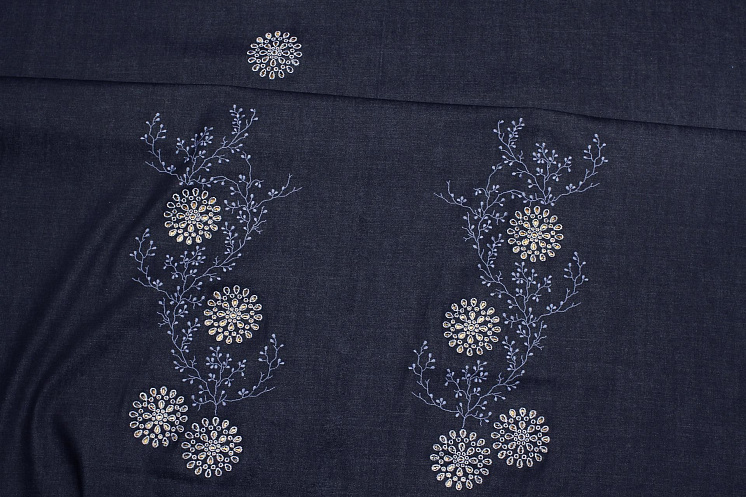 Джинса с вышивкой купон (2,85м) (н) темно-синяя Арт. 01-7391