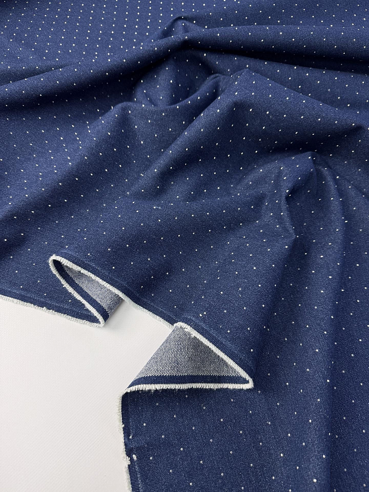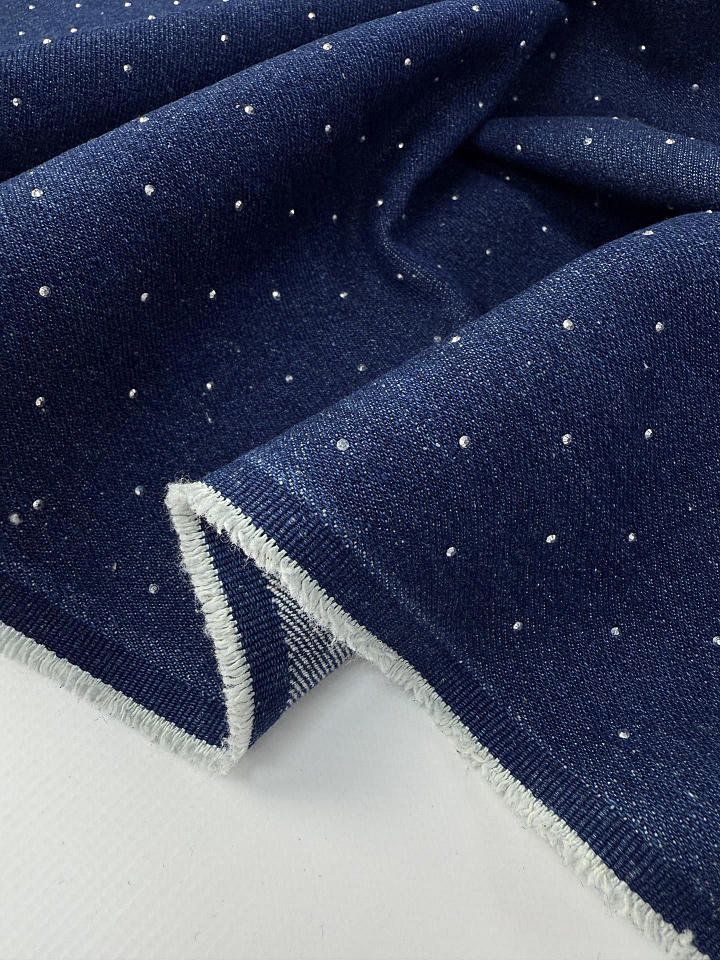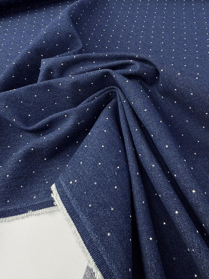 Джинса со стразами (о) темно-синяя - цена 3 200 ₽ У нас самые доступные цены на Джинсовые ткани в Москве, доставка по всей России - интернет магазин тканей Тессутидея. Артикул товара для заказа - 01-8030. Страна производства ткани – Италия. Ширина этого материала - 150. Состав - Хлопок 100%. Наличие остатков на складе - 12.2 м