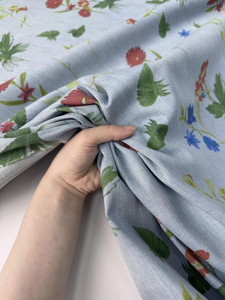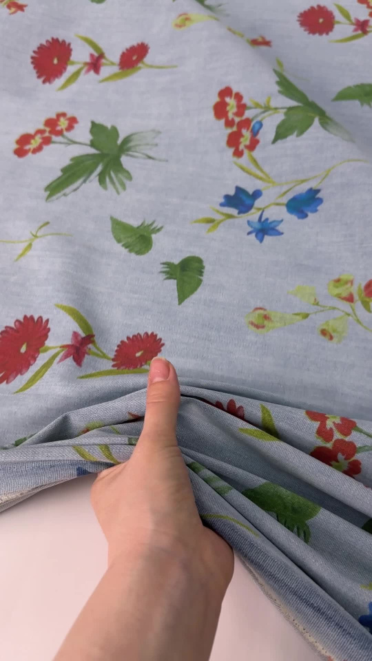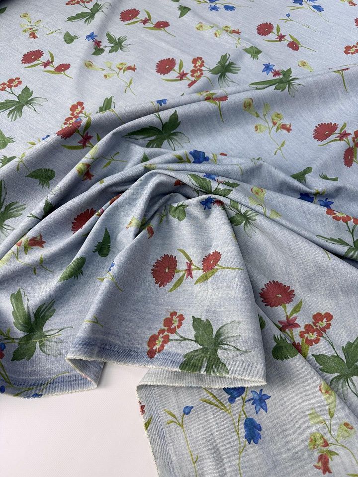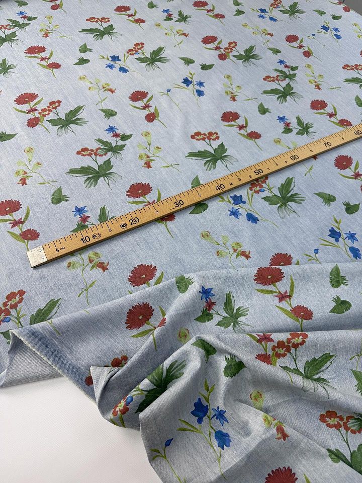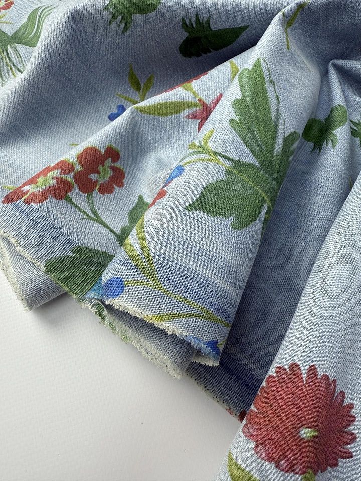 Джинса стрейч (н) цветочный рисунок на светло-голубом - цена 3 800 ₽ У нас самые доступные цены на Джинсовые ткани в Москве, доставка по всей России - интернет магазин тканей Тессутидея. Артикул товара для заказа - 01-8032. Страна производства ткани – Италия. Ширина этого материала - 160. Состав - Хлопок 98% эластан 2%. Наличие остатков на складе - 11.9 м