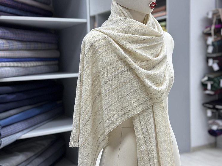 Кашемир купон-палантин бежево-молочная полоска 170*50см - цена 12 000 ₽ У нас самые доступные цены на в Москве, доставка по всей России - интернет магазин тканей Тессутидея. Артикул товара для заказа - F-6489. Страна производства ткани – Италия. Ширина этого материала - . Состав - Кашемир 100%. Наличие остатков на складе - 1
