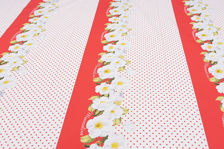 Хлопок бордюры (н) белые цветы и горох на красно-белом Арт. 01-6912