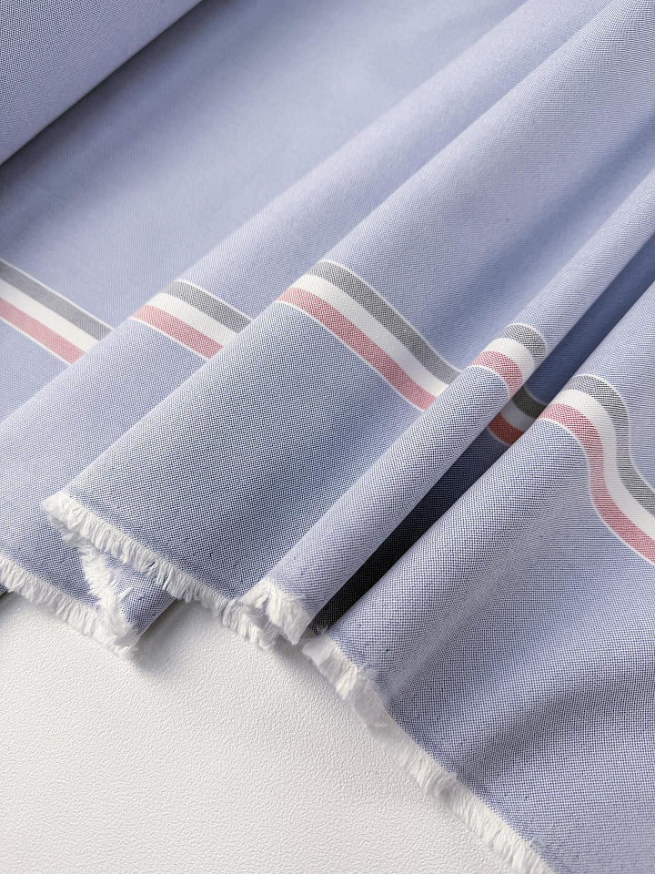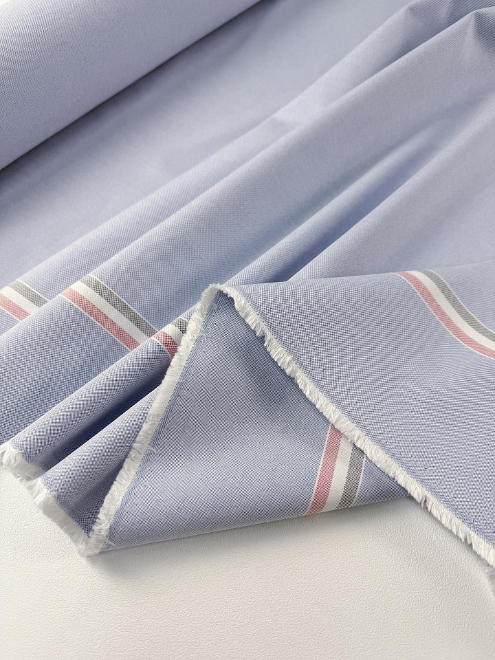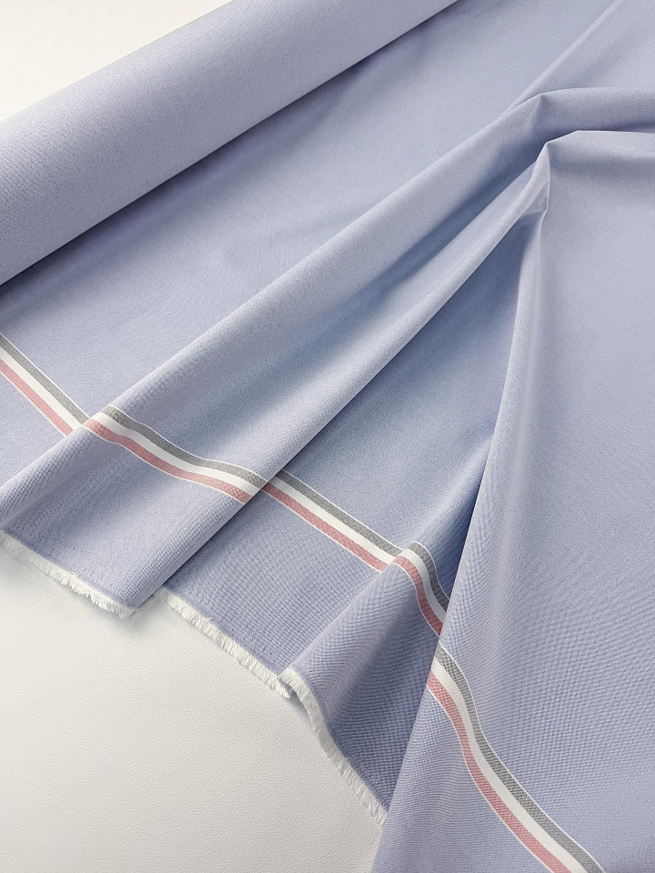 Хлопок костюмный дабл (н) бордюр-полоска на голубом - цена 2 600 ₽ У нас самые доступные цены на в Москве, доставка по всей России - интернет магазин тканей Тессутидея. Артикул товара для заказа - 01-8078. Страна производства ткани – Италия. Ширина этого материала - 155. Состав - Хлопок 100%. Наличие остатков на складе - 11.7 м
