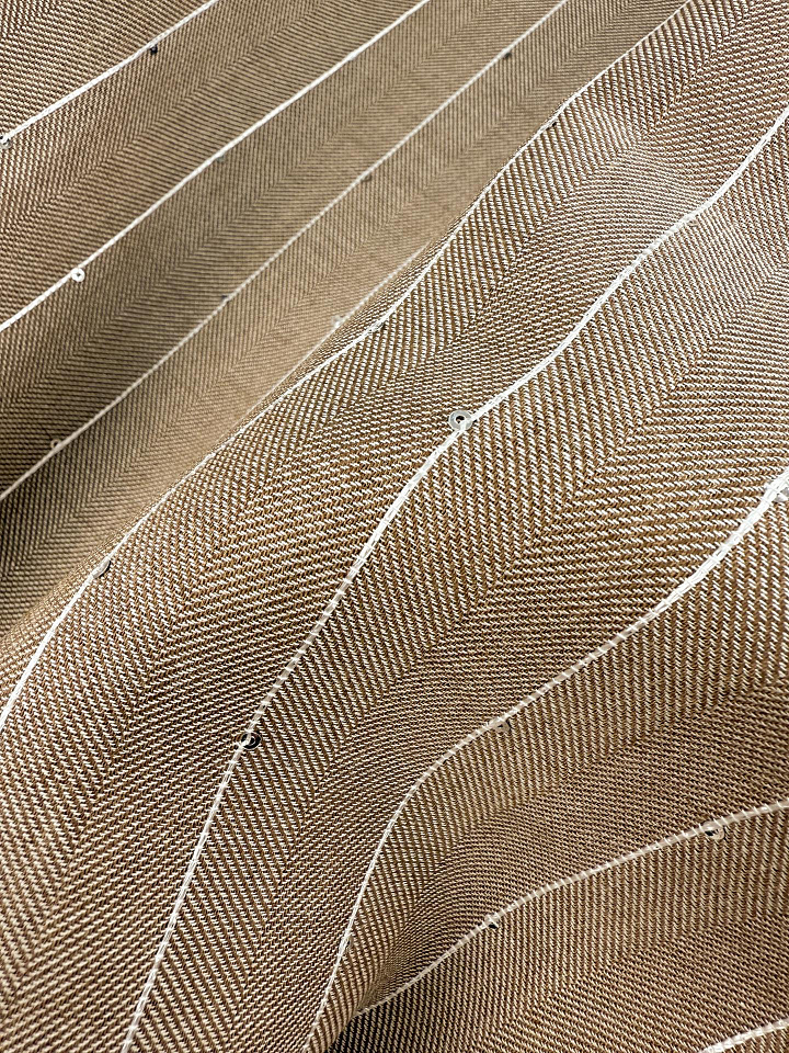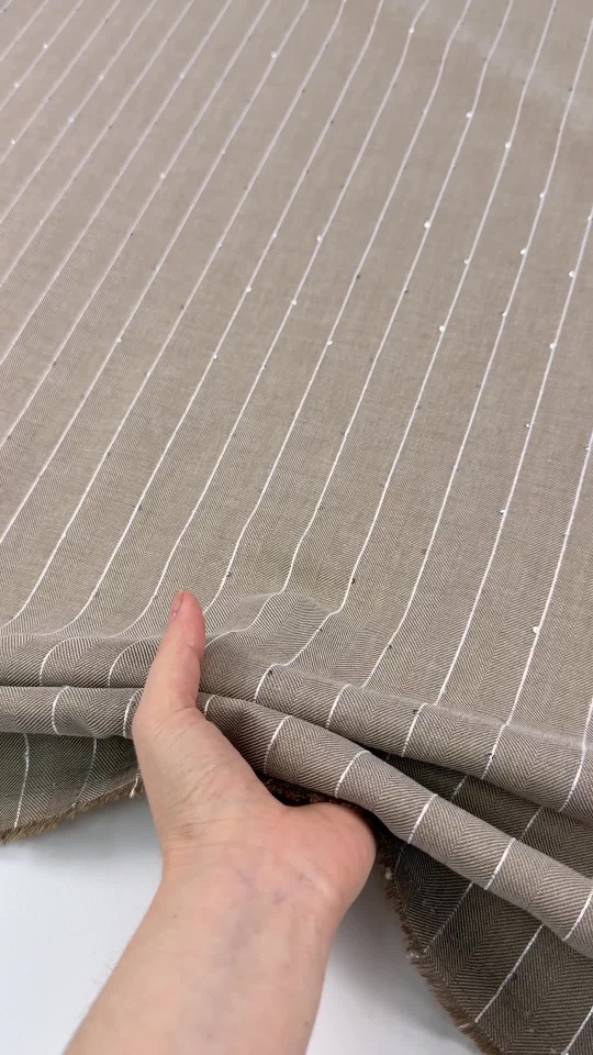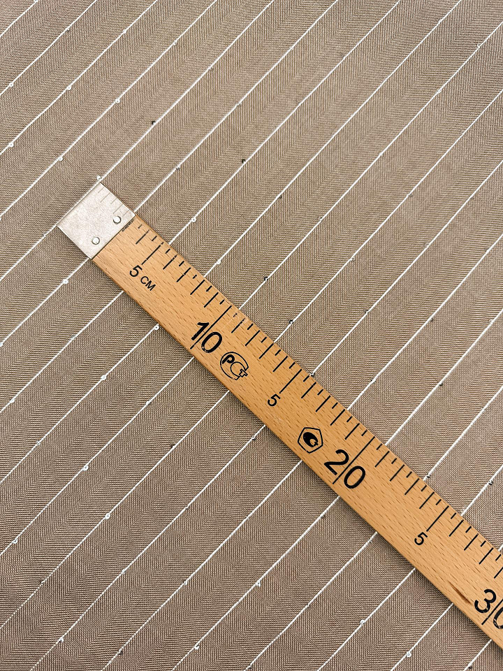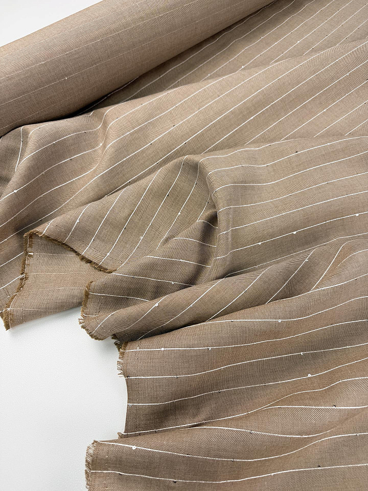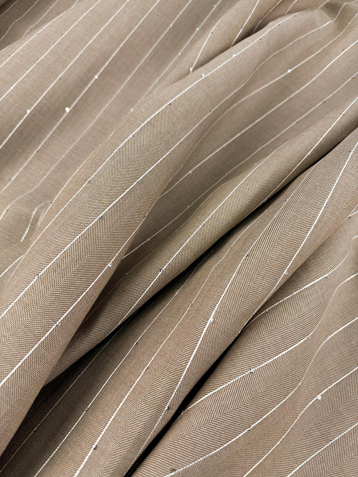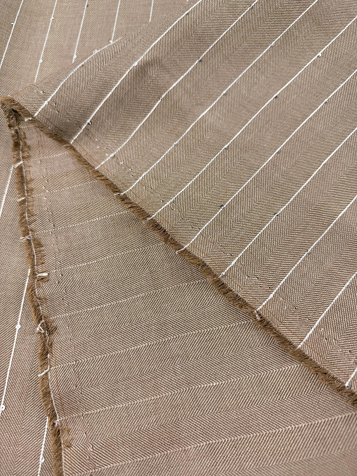 Хлопок костюмный (н) бежевая полоска с пайетками - цена 2 100 ₽ У нас самые доступные цены на в Москве, доставка по всей России - интернет магазин тканей Тессутидея. Артикул товара для заказа - 01-8127. Страна производства ткани – Италия. Ширина этого материала - 160. Состав - Хлопок 100%. Наличие остатков на складе - 18 м