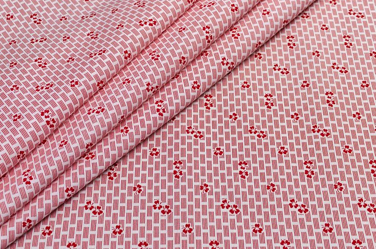 Хлопок (н) красный цветочно-геометрический орнамент на белом - цена 700 ₽ У нас самые доступные цены на Хлопок набивной в Москве, доставка по всей России - интернет магазин тканей Тессутидея. Артикул товара для заказа - 01-4906. Страна производства ткани – Италия. Ширина этого материала - 88. Состав - Хлопок 100%. Наличие остатков на складе - 9.8 м