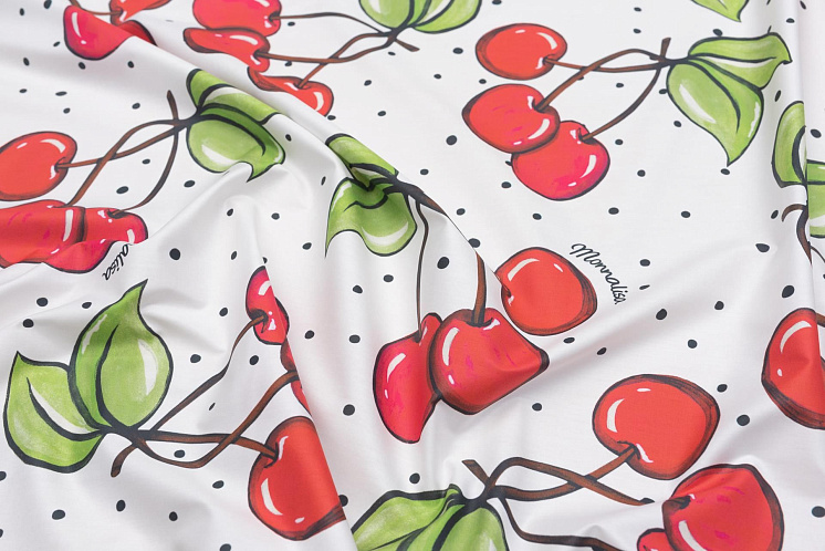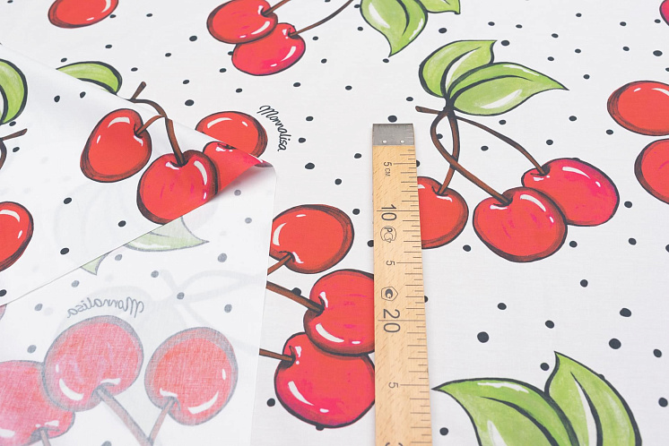 Хлопок (н) крупные вишни и горох на белом - цена 2 500 ₽ У нас самые доступные цены на Хлопок набивной в Москве, доставка по всей России - интернет магазин тканей Тессутидея. Артикул товара для заказа - 01-6918. Страна производства ткани – Италия. Ширина этого материала - 150. Состав - Хлопок 100%. Наличие остатков на складе - 7.2 м