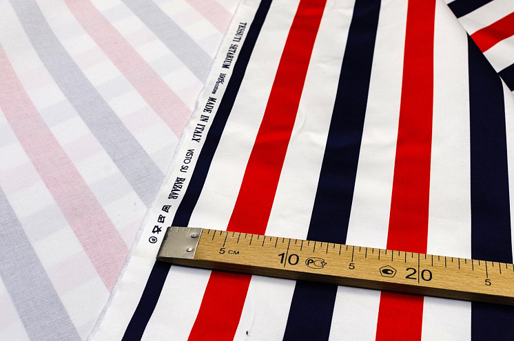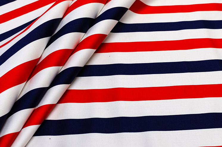 Хлопок (н) широкая сине-красно-белая полоска - цена 3 800 ₽ У нас самые доступные цены на Хлопок набивной в Москве, доставка по всей России - интернет магазин тканей Тессутидея. Артикул товара для заказа - 01-4901. Страна производства ткани – Италия. Ширина этого материала - 150. Состав - Хлопок 100%. Наличие остатков на складе - 2.4 м