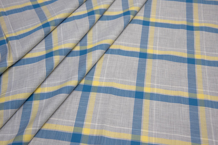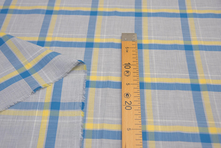 Хлопок (н) сине-желтая крупная клетка на сером меланже - цена 1 400 ₽ У нас самые доступные цены на Сорочечные ткани в Москве, доставка по всей России - интернет магазин тканей Тессутидея. Артикул товара для заказа - 01-6025. Страна производства ткани – Италия. Ширина этого материала - 155. Состав - Хлопок 75% лен 25%. Наличие остатков на складе - 1.5 м