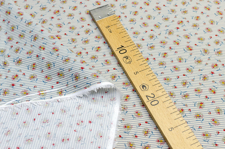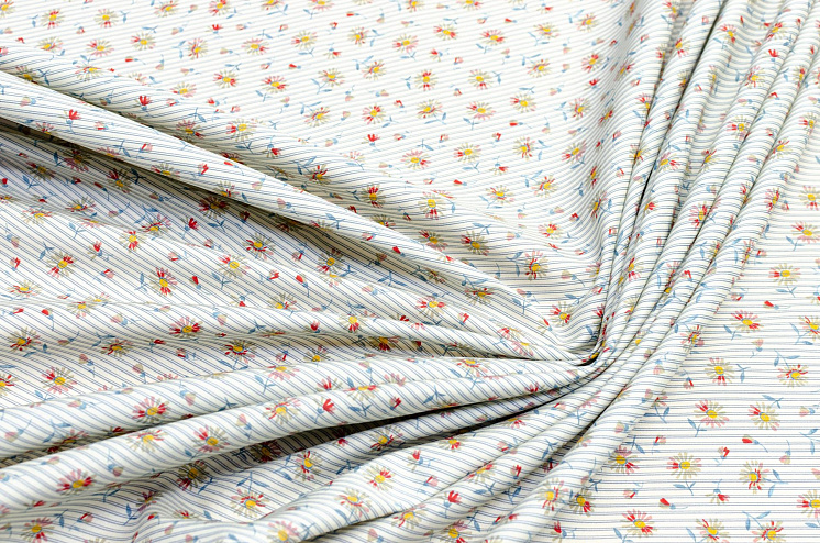 Хлопок (н) цветочный орнамент и полоска на молочном - цена 1 200 ₽ У нас самые доступные цены на Хлопок набивной в Москве, доставка по всей России - интернет магазин тканей Тессутидея. Артикул товара для заказа - 01-5161. Страна производства ткани – Италия. Ширина этого материала - 150. Состав - Хлопок 100%. Наличие остатков на складе - 2.25 м
