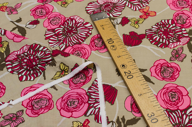 Хлопок (н) цветочный орнамент на бежевом - цена 1 200 ₽ У нас самые доступные цены на Хлопок набивной в Москве, доставка по всей России - интернет магазин тканей Тессутидея. Артикул товара для заказа - 01-5135. Страна производства ткани – Италия. Ширина этого материала - 140. Состав - Хлопок 100%. Наличие остатков на складе - 2.9 м
