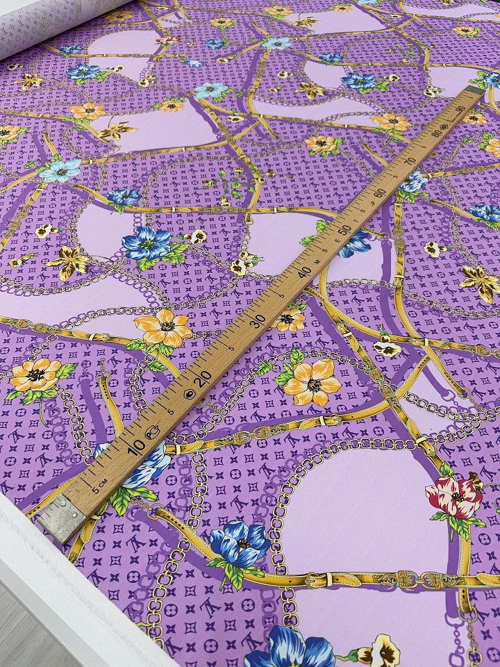Хлопок (н) цветочный рисунок, цепи и логотип на сиреневом Арт. 01-8041
