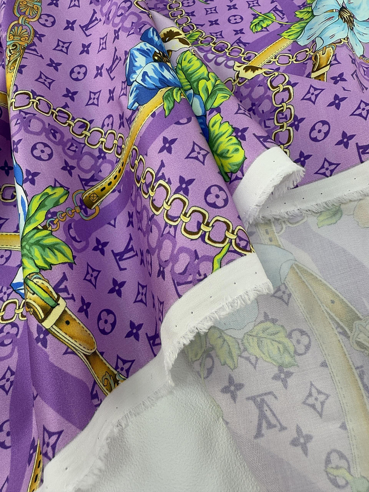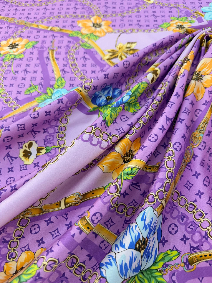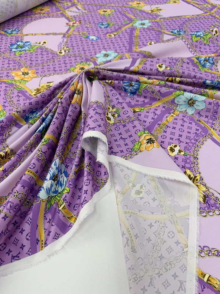 Хлопок (н) цветочный рисунок, цепи и логотип на сиреневом - цена 4 200 ₽ У нас самые доступные цены на Хлопок однотонный в Москве, доставка по всей России - интернет магазин тканей Тессутидея. Артикул товара для заказа - 01-8041. Страна производства ткани – Италия. Ширина этого материала - 155. Состав - Хлопок 100%. Наличие остатков на складе - 5.9 м