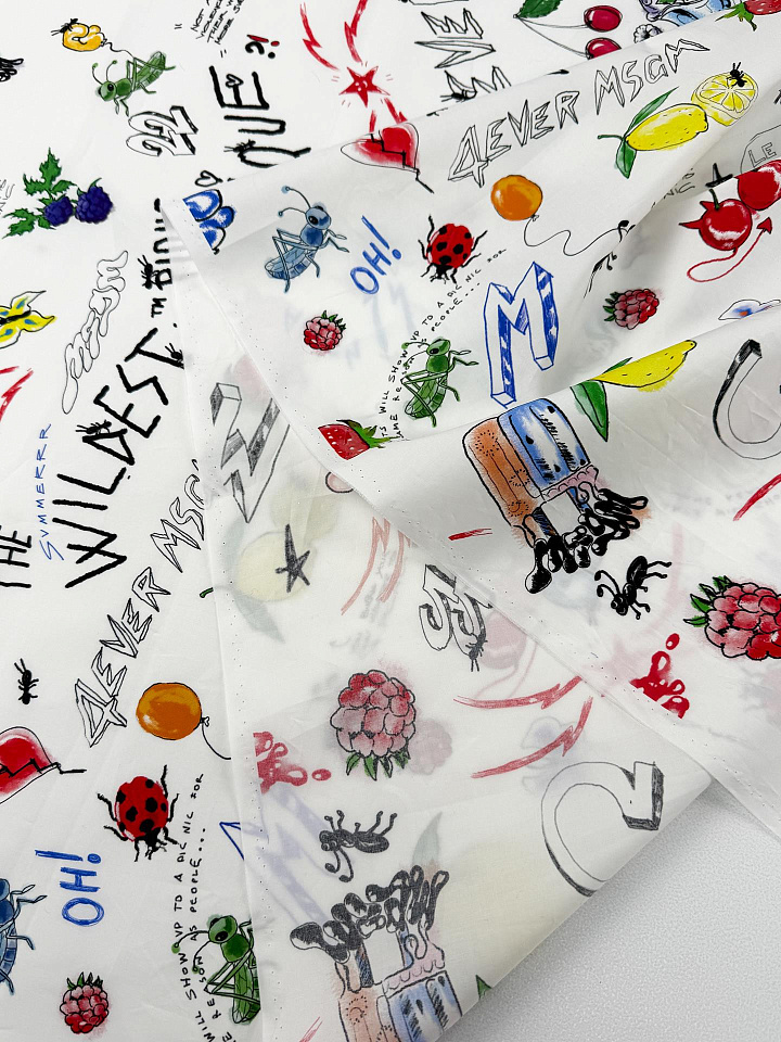 Хлопок (н) ягодно-цветочный рисунок и насекомые на белом - цена 2 400 ₽ У нас самые доступные цены на в Москве, доставка по всей России - интернет магазин тканей Тессутидея. Артикул товара для заказа - 01-8154. Страна производства ткани – Италия. Ширина этого материала - 150. Состав - Хлопок 100%. Наличие остатков на складе - 13.4 м