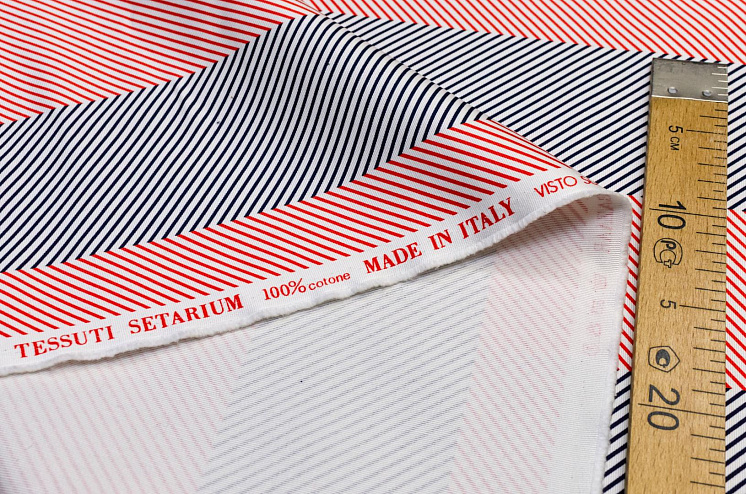 Хлопок репс (н) красно-синяя диагональная полоска на белом - цена 3 800 ₽ У нас самые доступные цены на Хлопок набивной в Москве, доставка по всей России - интернет магазин тканей Тессутидея. Артикул товара для заказа - 01-4898. Страна производства ткани – Италия. Ширина этого материала - 150. Состав - Хлопок 100%. Наличие остатков на складе - 2.9 м