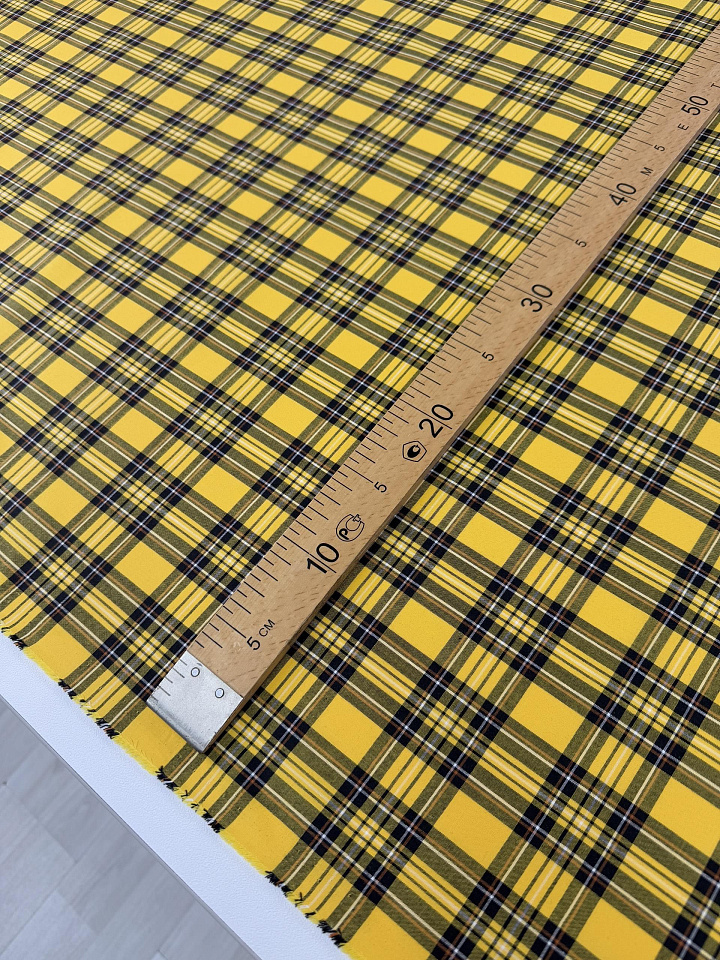 Хлопок сорочечный (н) черно-желтая клетка - цена 1 600 ₽ У нас самые доступные цены на в Москве, доставка по всей России - интернет магазин тканей Тессутидея. Артикул товара для заказа - 01-8050. Страна производства ткани – Италия. Ширина этого материала - 150. Состав - Хлопок 100%. Наличие остатков на складе - 3.1 м