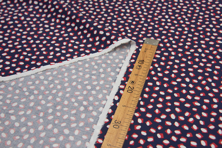 Хлопок стрейч фактурный (н) красно-белый геометрический орнамент на темно-синем Арт. 01-5844
