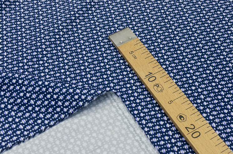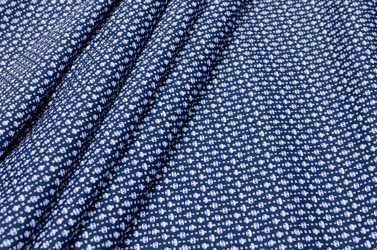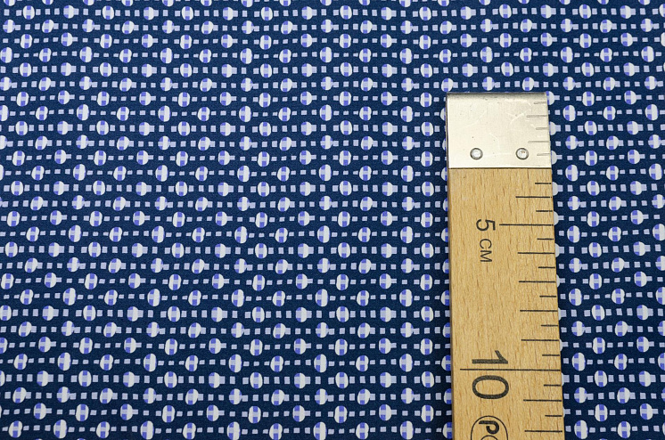 Хлопок стрейч (н) бело-голубой геометрический орнамент на темно-синем Арт. 01-5052