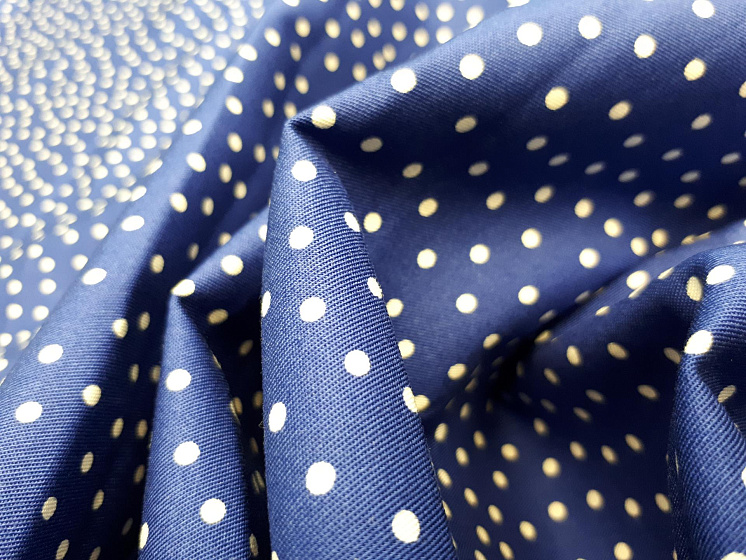 Хлопок стрейч (н) белый горох на синем - цена 1 500 ₽ У нас самые доступные цены на Хлопок набивной в Москве, доставка по всей России - интернет магазин тканей Тессутидея. Артикул товара для заказа - 01-4789. Страна производства ткани – Италия. Ширина этого материала - 150. Состав - Хлопок 98% эластан 2%. Наличие остатков на складе - 2.9 м