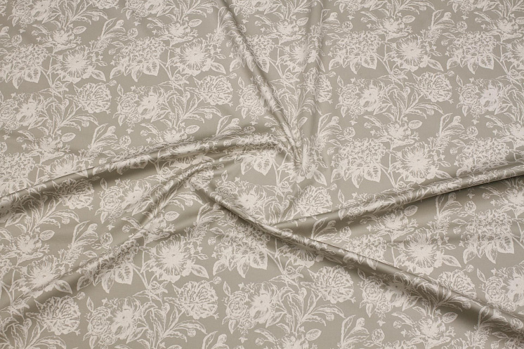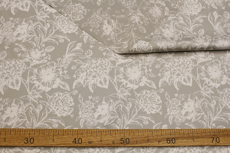 Хлопок стрейч (н) белый цветочный рисунок на сером Арт. 01-7778