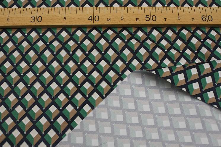 Хлопок стрейч (н) черно-бежево-зеленый геометрический рисунок Арт. 01-7833
