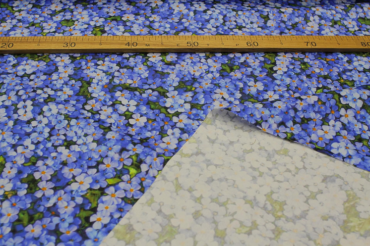 Хлопок стрейч (н) голубой цветочный рисунок Арт. 01-7152