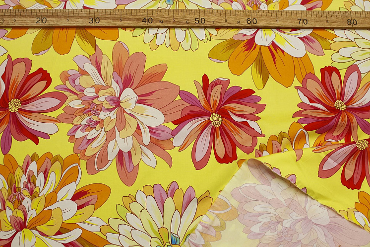 Хлопок стрейч (н) крупный цветочный рисунок на ярко-желтом Арт. 01-7501