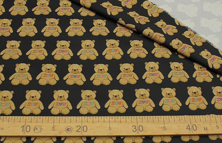 Хлопок стрейч (н) мишки на черном - цена 1 600 ₽ У нас самые доступные цены на Хлопок набивной в Москве, доставка по всей России - интернет магазин тканей Тессутидея. Артикул товара для заказа - 01-7190. Страна производства ткани – Италия. Ширина этого материала - 145. Состав - Хлопок 97% эластан 3%. Наличие остатков на складе - 7 м