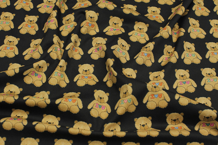 Хлопок стрейч (н) мишки на черном Арт. 01-7190