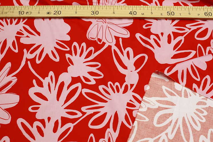 Хлопок стрейч (н) розовая цветочная абстракция на красном - цена 1 700 ₽ У нас самые доступные цены на Хлопок набивной в Москве, доставка по всей России - интернет магазин тканей Тессутидея. Артикул товара для заказа - 01-7407. Страна производства ткани – Италия. Ширина этого материала - 145. Состав - Хлопок 98% эластан 2%. Наличие остатков на складе - 10.5 м
