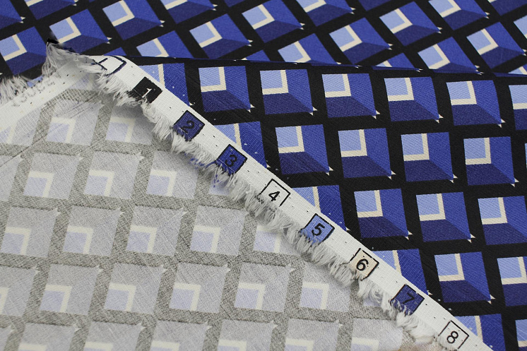 Хлопок стрейч (н) сине-черно-голубой геометрический рисунок - цена 1 600 ₽ У нас самые доступные цены на Хлопок набивной в Москве, доставка по всей России - интернет магазин тканей Тессутидея. Артикул товара для заказа - 01-7832. Страна производства ткани – Италия. Ширина этого материала - 140. Состав - Хлопок 97% эластан 3%. Наличие остатков на складе - 10.5 м